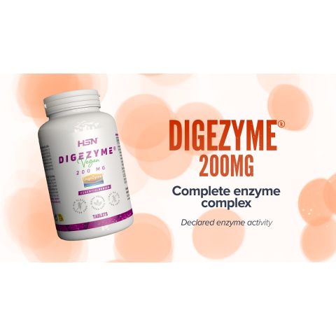 Enzyme complex. Digezyme® patent. 200mg per tablet. Declared enzymatic activity. Suitable for vegans.