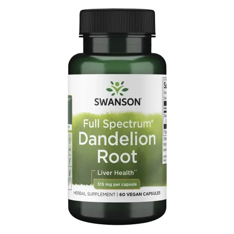 Full Spectrum® Dandelion Root 515mg from Swanson is a dietary supplement in veggie capsules made from dandelion root.