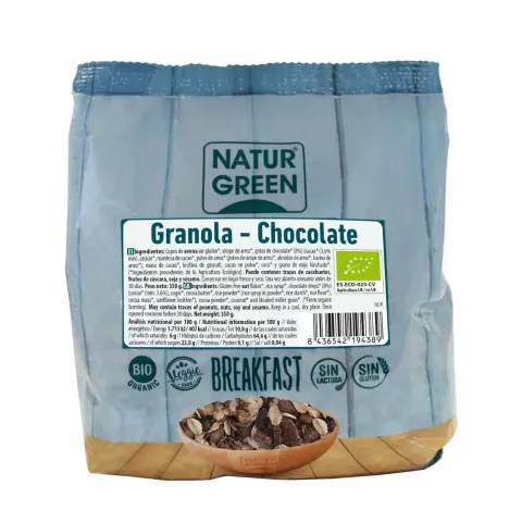 Granola - Chocolat de NaturGreen sont de flocons d'avoine au cacao parfaits pour prendre avec le petit déjeuner.