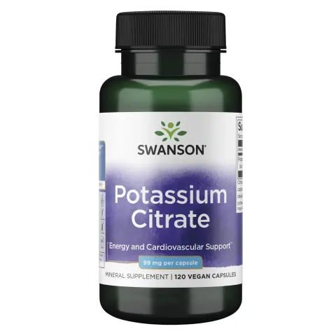 Citrate de Potassium 99 mg de Swanson est un complément alimentaire fabriqué avec du citrate de potassium pur en gélules végétales.