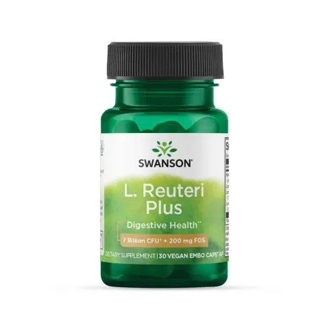 Lactobacillus Reuteri Plus 7 Milliards UFC + 200 mg FOS de Swanson est un complément alimentaire en gélules végétales à base de FOS et de 3 ferments bactériens.
