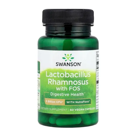 Lactobacillus Rhamnosus avec FOS 5 Billion CFU de Swanson est un complément alimentaire élaboré avec Lactobacillus Rhamnosus et des fructooligosaccharides (FOS) en gélules végétales.
